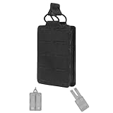 Single Magazine Pouch, Nylon Single Holder Utility Pocket Carrier, Shock Cord & Open Top Design, Molle Hanging Pouch Bag(Black)