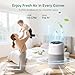 - 5-Stage Filtration System & 365-Day Filter Life: Advanced 5-layer filtration including 2-layer pre-filter, True HEPA13, efficiency filter and activated carbon; The air purifier captures 99.99% airborne particles with a size of 0.3 microns