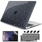 DONGKE for MacBook Air 13 inch Case 2021-2018 Release A2337 M1 A2179 A1932, Bling Plastic Hard Shell Case & Keyboard Cover Only Compatible with MacBook Air 13 inch Retina Fits Touch ID, Sparkly Black