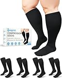 Snqqmtt 4 Pairs Plus Size Compression Socks for Women Men Wide Calf, Large Knee High Support Stockings for Circulation, Prevent Swelling, All Day Comfort, for Pregnant Nurse Exercise Travel, 20-30 mmHg