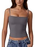 QINSEN Women's Spaghetti Strap Tank Tops Adjustable Cute Camisole Going Out Crop Tops Summer Clothes Dark Grey L