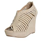 Step out in these lovely platform wedges! Features peep toe front, strappy construction at vamp, stitching details, covered platform and wedge heel. Finished with lightly padded insole and rear zipper closure for easy on/off.