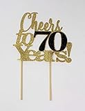 All About Details Cheers to 70 Years! Cake Topper,1pc, 70th Birthday, Anniversary, Party Decor, Glitter Topper (Gold & Black)