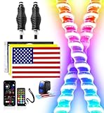 Tavaray 2PCS 2FT Fat Whip Lights – Spiral RGB Chasing Lighted Antenna Whips with Flag, Whip Lights for Side by Side UTV ATV RZR Can-Am X3, with App/Remote Control, Turn Signal & Rocker Switch