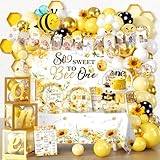 Fexivo 272 PCS First Bee Day Decorations Girl, All-in-One Bee 1st Birthday Party Decorations Set with Balloon Arch, Plates, Cups, Napkins, Tablecloth, Banner & Backdrop, Serves 25