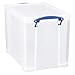 Really Useful Box 19 Liter Plastic Stackable Storage Container w/Snap Lid & Built-In Clip Lock Handles for Home & Office Organization, Clear (4 Pack)