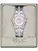 - Editor's Notes: Relic by Fossil Queen's Court three hand date watch for women will carry you from day to evening. This watch has a durable stainless steel case accented with Swarovski crystals and a sturdy mineral glass lens. The pink mother-of-pearl dial features crystal accents, a calendar for keeping you on schedule and silver luminous hands and indexes to check the time in low light. The steel link bracelet is accented with crystals and self-adjustable buckles.
