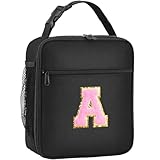 Initial Insulated Lunch Bag, Lunch Box with Initial Letter Patch for Teen Adult, Reusable Lunch Bag for Men Women, Ideal Back to School Gift Back to School Gift Birthday Gift, Pink A
