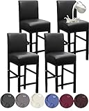 HFCNMY Bar Stool Covers,4 Pack Stretch Waterproof PU Bar Stool Covers with Backs Bar Stool Chair Covers Barstool Covers Slipcovers with Back Pub Counter Stool Chair Covers with Elastic Bands Black