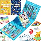 All in One Art Supplies, Art Kit Includes Origami & Paper-Cutting Crafts, Easel, Colored Pencils, Crayons, Drawing Book, Coloring Book, Watercolor Markers and More, Art Set for Kids Girls Boys, Blue