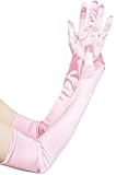 Women Long Smooth Satin Ceremonial Gloves Elegant Party Prom Cosplay Bridal Wedding Dress Fashion Accessories Stage Show (Pink,One Size)