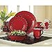 85216 Features: -100% Hand painted. -Dotted, scalloped rims decorate the vibrant red color. -Material: Glazed ceramic. -Collection: Ruffle. -Set includes 4 piece dinner plates, 4 piece salad plates, 4 bowls and 4 mugs. Style: -Modern/Traditional/Contemporary/Vintage. Material: -ceramic. Set Includes: -1. Seasonal Theme: -Yes. Season: -Spring/Summer/Fall/Winter. Dimensions: Dinner Plates: -Yes. Dinner Plate Width - Side to Side: -10". Dinner Plate Depth - Front to Back: -10".