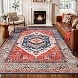 SERISSA Washable Rugs 6x9 Area Rugs, Large Non-Slip Boho Living Room Rust Rug, Ultra Soft Vintage Print Distressed Oriental Tribal Farmhouse Carpet for Dining Room Bedroom Dorm Office Home Decor