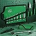 - 14-piece stubby wrench set includes: SAE 3/8",7/16",1/2",9/16", 5/8", 11/16", 3/4", Metric 10mm, 11mm, 12mm, 13mm, 14mm, 15mm, 18mm, the clear size marking are stamped on the wrench for easy identification and selection. Hangable rolling pouch for easy storage and organization