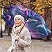 NEW INVERTED FOLDING DESIGH: This upside down umbrella takes a inside-out design. When close it, the wet part will be inside of the umbrella, preventing water from dripping,and it will not get yourself wet when getting in and out of the car. You don't even need to worry about this automatic travel umbrella will wet your floor and mat.Bring you great convenience when you get in/out car.