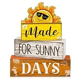 Lineshading 4 Pcs Summer Table Decoration Wooden Sun Beach Tiered Tray Decor Summer Centerpiece Rustic Wood Made for Sunny Day Block Sign Gifts Beach Decorations for Home Kitchen Office Coffee Bar