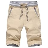 Mens All Cotton Buckle Short Above Knee Simple Slim Fit Shorts Straight Leg Skinny Stretch Short (Khaki,X-Large)