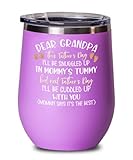 Fathers Day Wine Tumbler for New Grandpa Ill Be Snuggled In Mommys Tummy Cute Baby Foot and Hand Print First Time Grandfather Pregnancy Announcement 1
