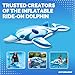 - {BUILT FOR STABILITY & SAFETY}: Featuring dual grab handles, this ride-on dolphin ensures extra stability and support for easy maneuvering. Perfect for the whole crew to float safely and confidently all summer long!
