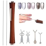 Cat Eye Nail Magnet Tool Set, Professional 3 in 1 Wooden Handle Nail Art Magnetic with Heart & Rabbit Shape Guides Metal Wire for Cateye Gel Polish Home DIY & Salon Use