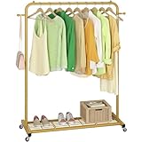 Sywhitta Clothes Rack on wheels, Clothing Rack with Bottom Mesh Storage Shelf,Sturdy Metal Frame,Rolling Garment Rack for Hanging Clothes,Coats,Skirts,39.76" L x 16" W x 64.56" H,Golden