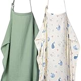 ANYEDDE 2-Pack Nursing Cover for Baby Breastfeeding - Muslin Breastfeeding Covers for Women Nursing, Breathable, Soft Arch Neckline, Green & Whale