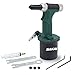 <br> <b>Product Description:</b>  <br>  <br>The SAKAI Pneumatic rivet gun includes the following nosepieces: 3/16"(4.8mm), 5/32"(4mm), 1/8"(3.2mm), 3/32"(2.4mm).  <br>Can use for Stainless steel nail, iron nail and aluminium nail  <br>Quick release air valve permits cylinder to return quickly for high speed assembly operations: Prevents overloading for long life.  <br>Gets into hard-to-reach areas.Provides quick, quiet and comfortable operation preventing user fatigue.Performs well at any angle. <br> <b>Specifications:</b>  <br>  <br>Net Weight: 2.9lb (1.33kg)  <br>When work pressure at 6 kgf/cm (85.34PSI),Rated tension is 890 kgf (1962.11 lbf)  <br>When work pressure at 8 kgf/cm (113.79 PSI),Rated tension is 1180 kgf (2601.45 lbf)  <br>Air Pressure: 80-120psi  <br>Air Riveter - 3/32", 1/8", 5/32", 3/16" Capacity  <br>Product travel: 19mm  <br>Hydraulic oil grade is 46 <br> <b>Features:</b>  <br>  <br>360 degree turnable 1/4-inch NPT air inlet, avoid bending pipe  <br>Short trigger,grip more comfortable, work more efficiently  <br>Air inlet increase control switch, no need to disconnect the intake pipe or shut down the air compressor, more  <br>convenient and environmentally friendly  <br>No vibration technology, the operation feel  <br>comfortable,extended service life.  <br>silencer design, low noise during operation and comply with environmental requirements. <br> <b>Attention: </b>  <br>  <br>Our product have one year warranty.  <br>SAKAI is registered Trademark by sanhegj.SAKAI Air tools supply you with power, flexibility & exceptional value.  <br>The SAKAI air rivet gun is an ideal accessory for your air compressor.  <br>If you have any questions , please feel free to contact us.