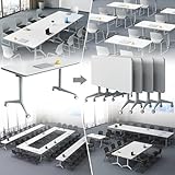 rzoizwko 6-Pack 47.2" Folding Conference Table, Heavy-Duty Flip-Top Mobile Conference Tables with Wheels, Modular Rolling Tables for Office, Training & Meeting Rooms
