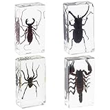 1st Heaven 4 Pcs Gothic Insect Specimens in Resin – Scorpion, Spider, Stag Beetle – Dark Creepy Specimen Collection for Halloween Decor & Curiosity Display – Includes ID Cards & Magnifying Glass