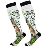 Joisal Cute Cat St Patrick Shamrock Knee High Compression Socks for Men and Women, Comfort Support, all Day Comfort, 1 pair