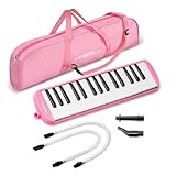 MOSEN 32 Keys Melodica Instrument, Air Piano Keyboard Pianica Soprano Melodica with 2 Soft Long Tubes, Short Mouthpieces, Carrying Bag, Pink