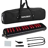 YAYUZEST 32 Keys Melodica Instrument, Soprano Melodica Air Piano Keyboard Pianica with 2 Soft Long Tubes, 2 Short Mouthpieces and Carrying Bag (Black+Red)