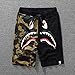 Shark Pattern Camouflage Stitching Shorts Men Drawstring Black Sports Shorts