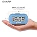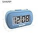 The Sharp (SPC483LFAMZ) has a tactile rubberized light blue finish case with a unique feel and Easy-to-Use Top Button Controls for easy operation and setting of the clock. Features a large 1” LCD Display, making it easy to see across the room. The clock is battery operated, so you can take it anywhere!