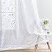 Sheer Curtains White 45 Inches Long Floral Embroidery Rod Pocket Voile Drapes for Living room, Bedroom, Window Treatments Semi Lace Outdoor Curtain Panels for Yard, Kitchen, Villa, Set of 2, 52"x 45".