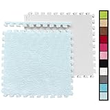 12 Pcs Kids Foam Interlocking Carpet Tiles with Border, Thick Carpet Squares Plush Floor Playmats Baby Crawling Rug - 49" x 37" (SkyBlue, 12 Tiles)