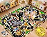 AlphabetAcre Kids Rug, Race Track Baby Play Mats, 4x6 Ft Kids Rug for Playroom,Extra Thick (0.4in) Realistic 3D Cascading Surround Route, Great for Playing with Cars and Toys, Non-Slip Car Carpet