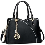 KKXIU Triple Compartments Purses and Handbags for Women Fashion Ladies Satchel Shoulder Top Handle Bag (2-BLACK)