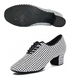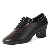 Women Latin Dance Shoes Leather Breathable Fashion Professional Performance Dance Shoes Rubber Sole Lace Up Ballroom Dance Pratice Shoes (Color : Black-5CM/1.96In, Size : 8.5)