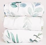 NODNAL CO. Bassinet Sheets 3 Pack Set 100% Oeko-TEX Cotton Baby Girl/Boy - Gender Neutral Leaves Floral Eucalyptus Greenery Cradle/Moses Basket Hourglass Oval Rectangle Mattress (3 Pack (All Styles))