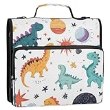 Boccsty Colorful Cartoon Dinosaurs Planet Zipper Binder 3 Ring Binders Expanding File Folder Multi-Pocket Zipper Binder Organizer for School Shoulder Strap and Handle