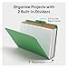 Smead Pressboard Legal Size File Folders with SafeSHIELD Fasteners, 2 Dividers, 2" Expansion, Office Folders, Paper Holder, Green, 10 per Box (19033)