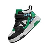 Boys Girls Outdoor Sports Shoes, Board Shoes With Leather Upper, Breathable And Comfortable With Soft Padded Neck, Fashionable Retro Street Style, Basketball Shoes Suitable for All Seasons Green Black