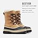 - Caribou Women's Boot from SOREL: This waterproof boot with laces allows you to adjust the tightness for a secure feel; the winter boot features a handcrafted, waterproof, and vulcanized rubber shell with a SOREL aero-trac non-loading outsole