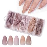 Misscheering Medium Almond Shape 140 Pcs 5 Colors Gradient Nude Press On Nails, Soft Gel Full Cover Fake Nails Kit, All-in-One Structure Technology Long-Lasting 28-Day Wear, Chip-Resistant & No Fade