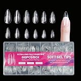 600-PCS Half Matte Short Almond Gel Nail Tips, Clear Press on Acrylic Fake Nails, Pre-Building Strong Thick Long Lasting - 12 Sizes for All Nail Shapes Suitable for Beginners