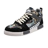 Hhhchpm Men's High-Top Striped Lace-Up Skate Shoes for Casual Comfort and Outdoor Activities,Suitable for All Seasons (Black,8.5)
