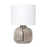 Simple Designs LT2064-SMW Smoke Gray Glass Table Lamp with White Fabric Shade
