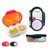 b.box Snack Box 2 Pack - Leak Proof Mini Bento Box for Kids & Toddlers, 2 Compartment Snack Containers for Kids, Dishwasher Safe, BPA Free, PFAS Free, Ages 4m+, 1 3/4 Cup Each (Strawberry + Indigo)