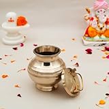 IDAHA Brass Pavitra Kamandal | Gangajali | Kalash | Lota | with Lid for Gangajal | Holy Water Pot for Temple & Home and All Pooja (Capacity : 400ml | Size : 11cm | Weight : 229gm Approxe)